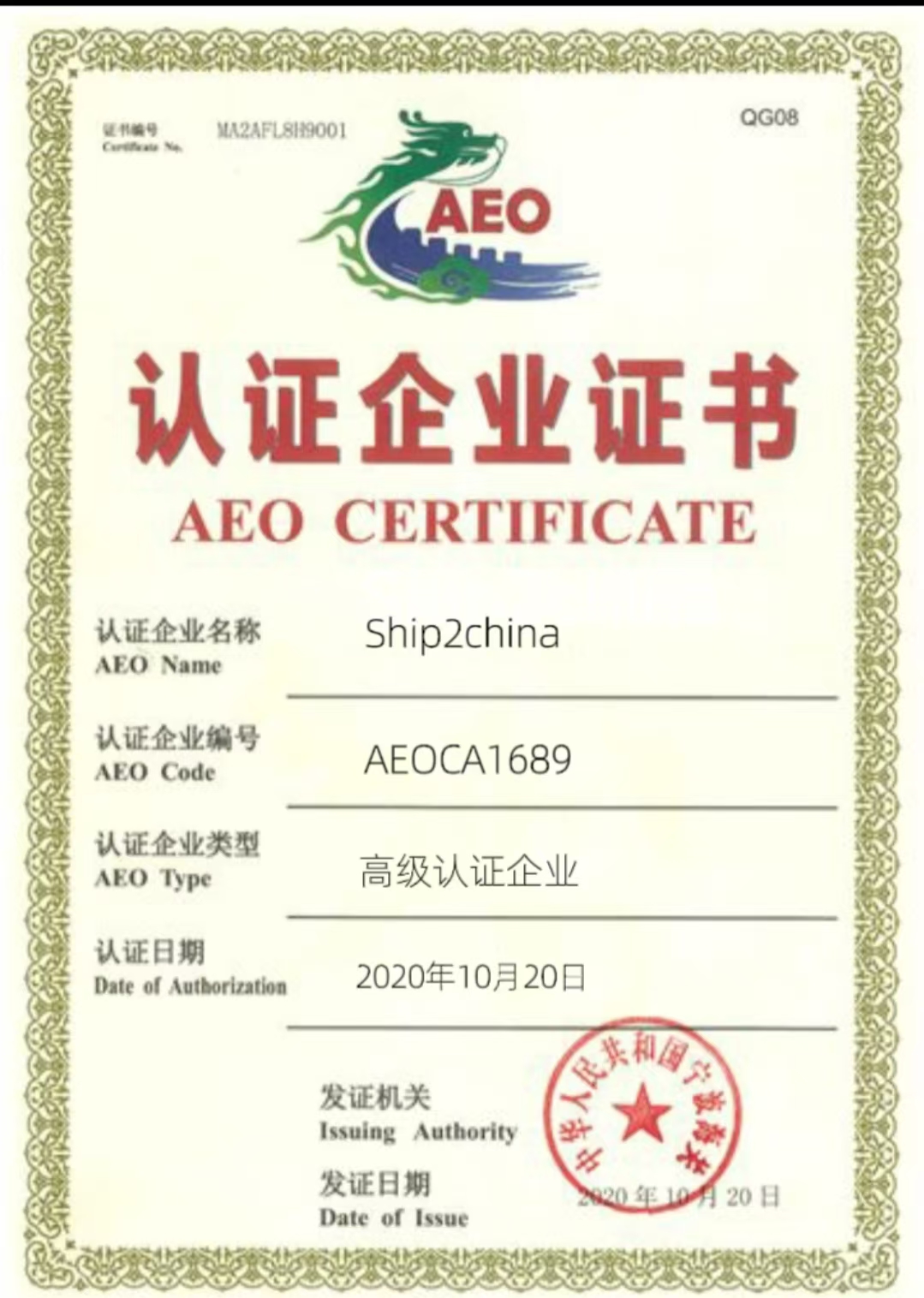 专业资质:报关企业注册登记证书、AEO认证等资质。